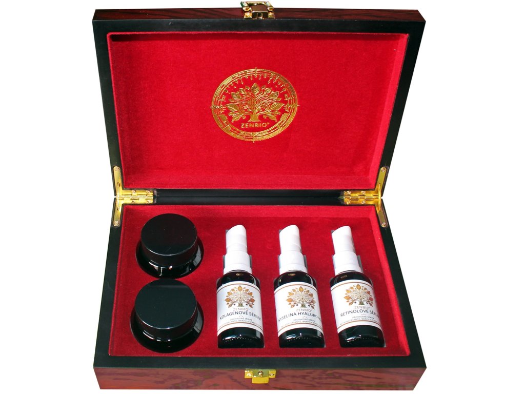 Celkem se jedná o pět kosmetických přípravků v hodnotě 1 145 Kč, nyní ve zvýhodněné ceně 973 Kč. Součástí je i luxusní dřevěná kazeta Zenbio zdarma.